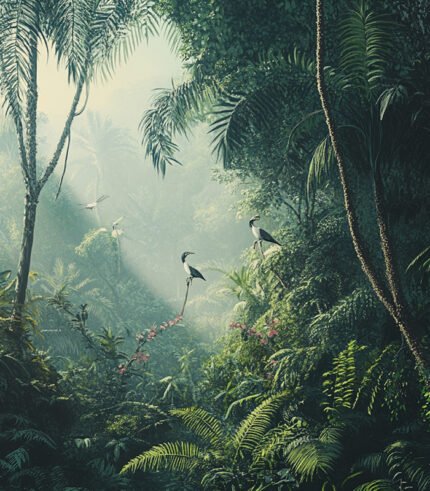 A rain-slicked street mirrors city lights, blending wet asphalt with glowing neon hues.
