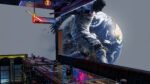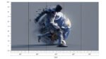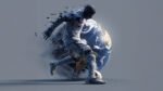 Dynamic soccer player kicking a fragmented globe with a soccer ball