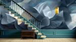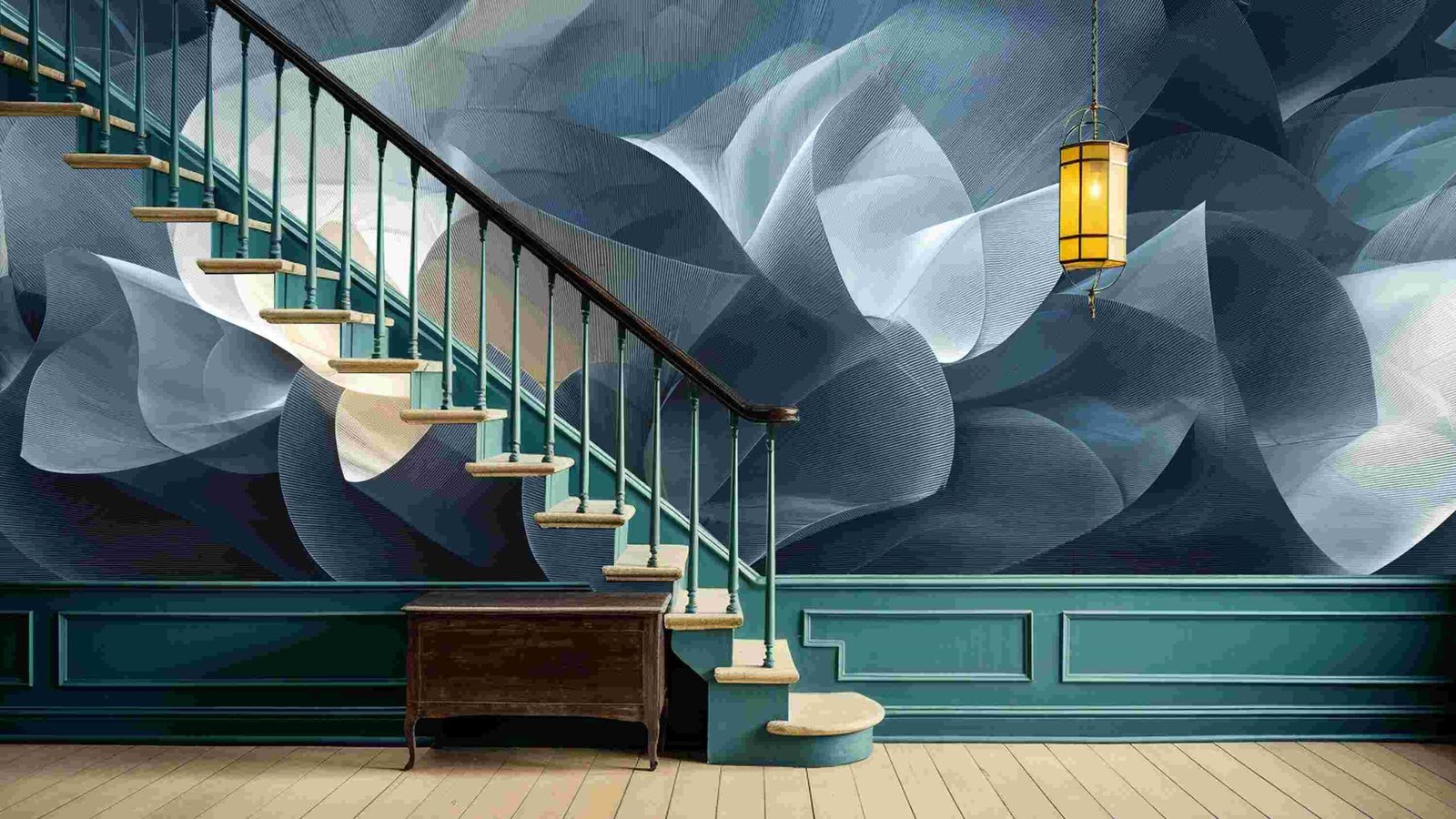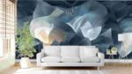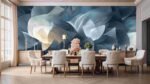 A swirling pattern of blue and white shapes resembling petals or waves in a soft, flowing design.