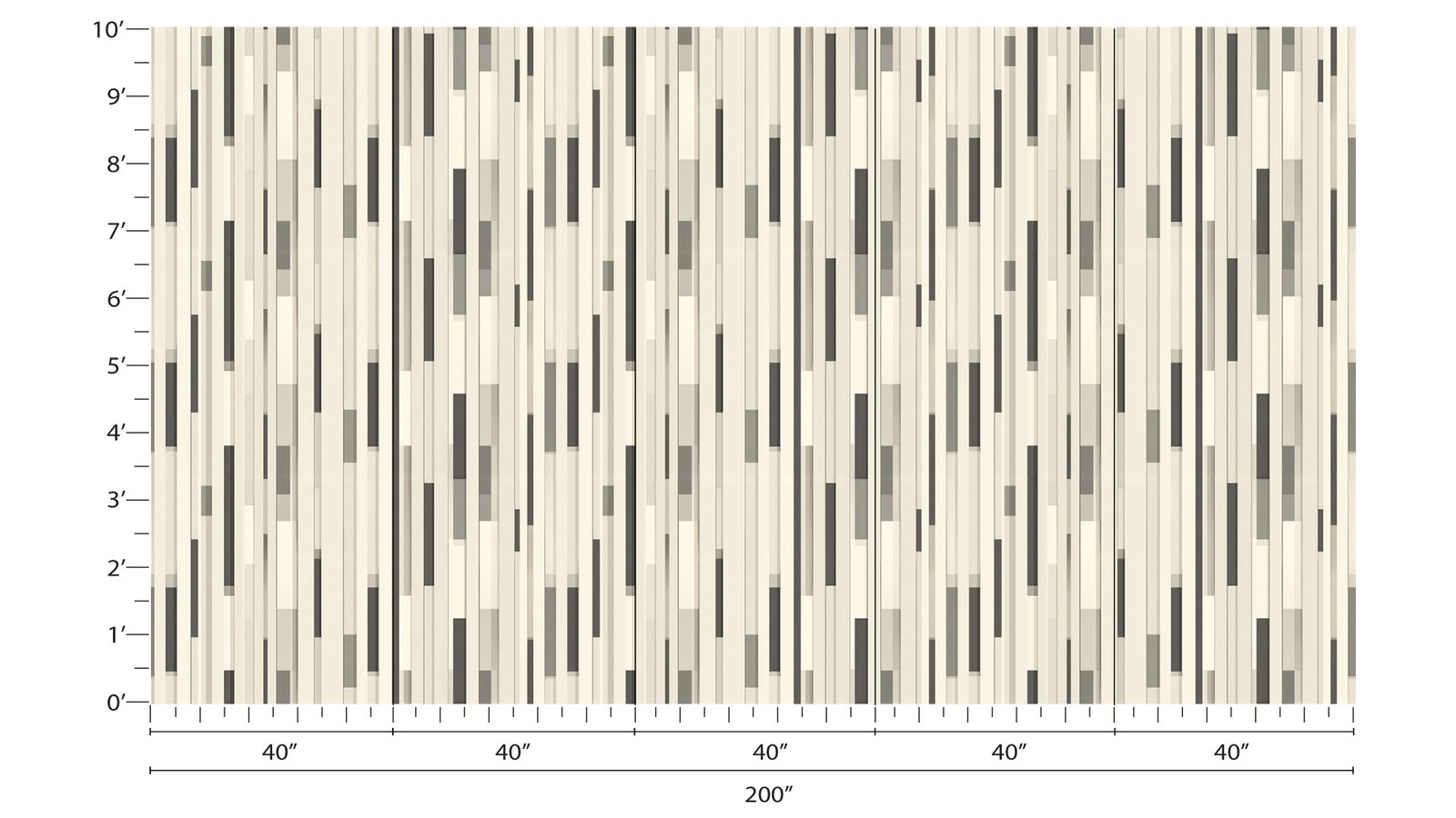 A pattern of vertical stripes in varying shades of beige, gray, and black creating a modern design.