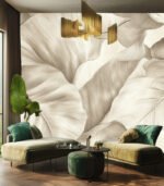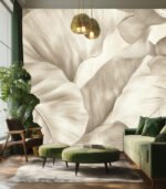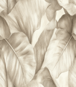 Intricate sepia-toned illustration of overlapping banana leaves, showcasing detailed textures and shading, creating a serene and natural pattern. Perfect for elegant decor.
