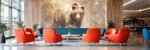 A detailed painting of a bear walking, set against a textured, abstract background.