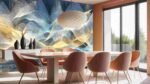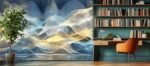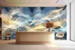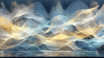 A soft-focus waterfall flows gracefully, creating a serene and dreamy atmosphere.