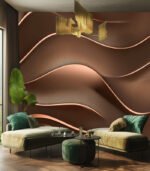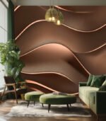Abstract design with smooth, flowing bronze waves and textured surface, creating a sense of movement and elegance in a modern, artistic composition.