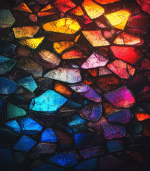 A vibrant mosaic of stained glass pieces in a myriad of colors, creating a visually captivating and textured abstract pattern.