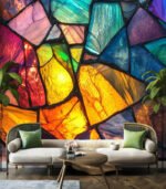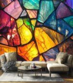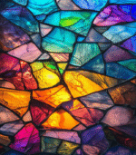 A vibrant mosaic of stained glass pieces, showcasing a spectrum of colors that beautifully blend light and texture into a captivating visual symphony.