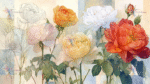 A collection of various roses in shades of pink, yellow, white, and red with green leaves against a soft background.