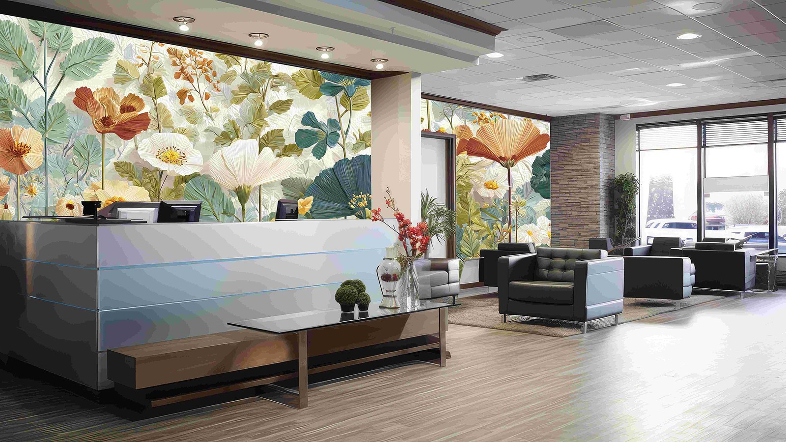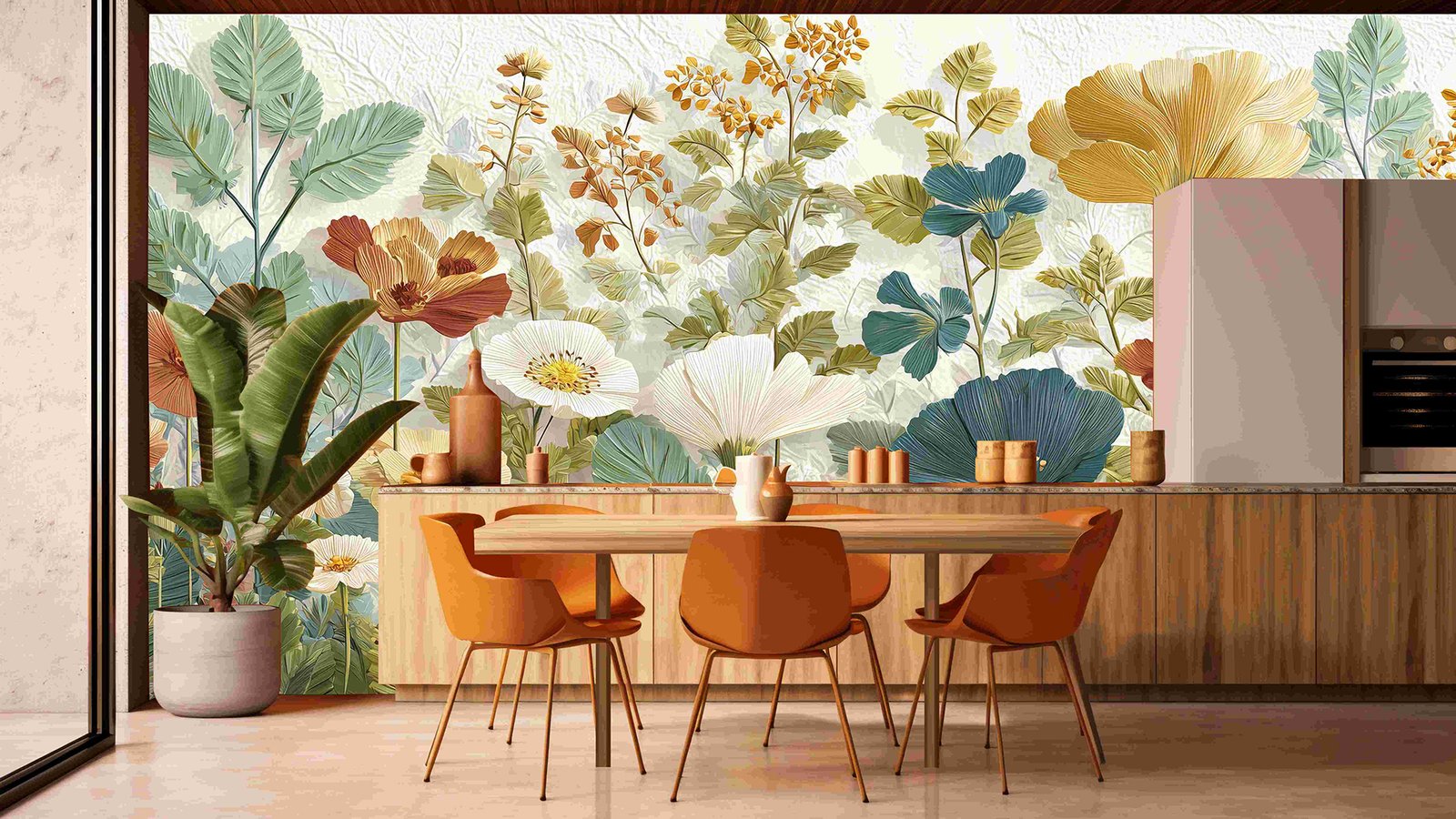 A vibrant display of various flowers and leaves in shades of yellow, orange, and green.