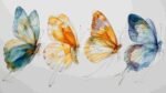 Four butterflies with distinct colors and patterns, showcasing delicate, translucent wings.