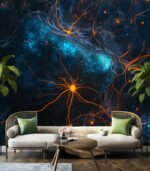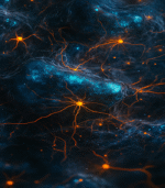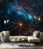 A mesmerizing digital artwork depicting a network of glowing orange neural pathways intertwined with a cosmic blue background, evoking a sense of deep space exploration.