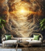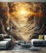 A mesmerizing celestial scene with swirling clouds and radiant light, evoking a sense of awe and wonder in a cosmic landscape.