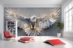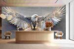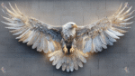 Intricately detailed eagle sculpture with outstretched wings mounted on a wall.