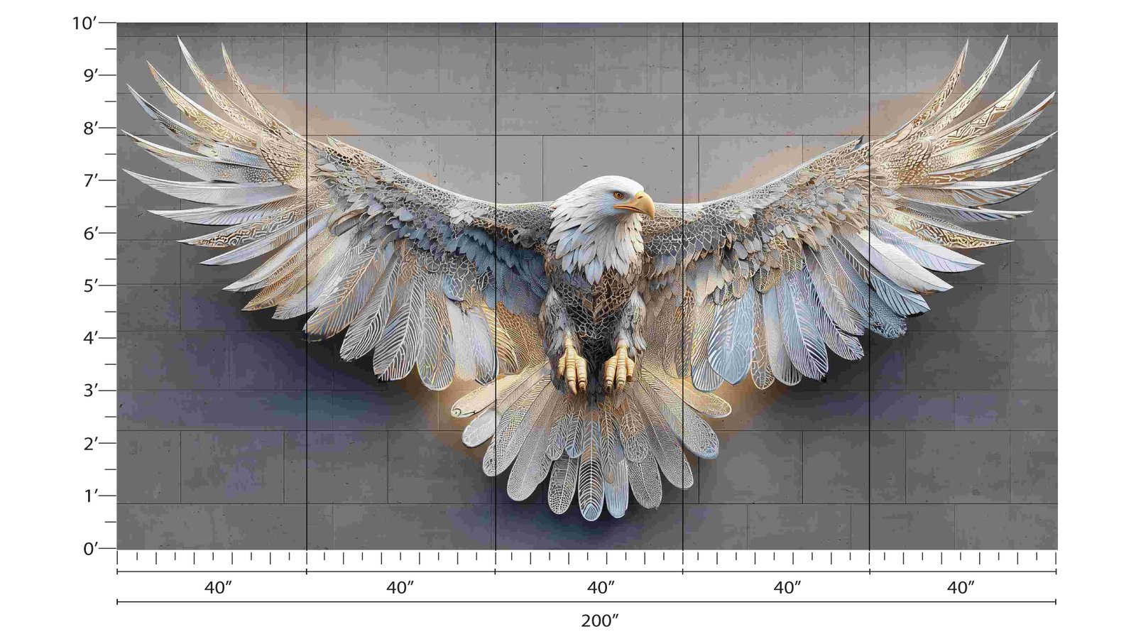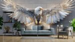 Intricately detailed eagle sculpture with outstretched wings mounted on a wall.
