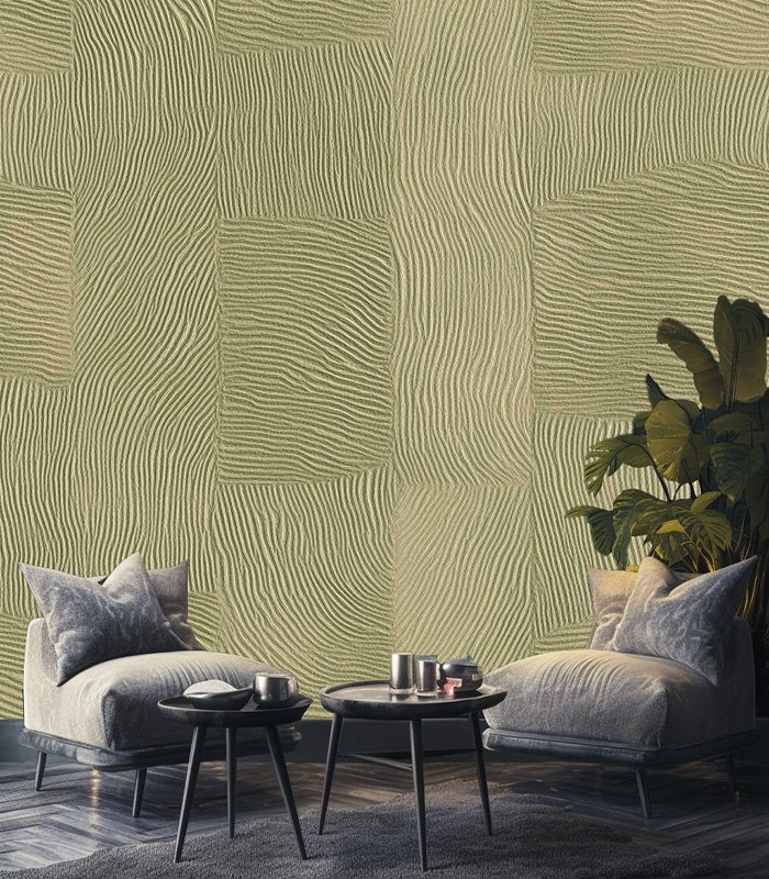 Abstract pattern with wavy, textured lines in earthy tones, creating a sense of movement and depth across a patchwork-like surface.