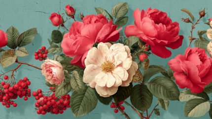 Classical marble busts set against a weathered fresco of floral motifs and birds, blending ancient sculpture with soft, painterly elegance.
