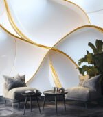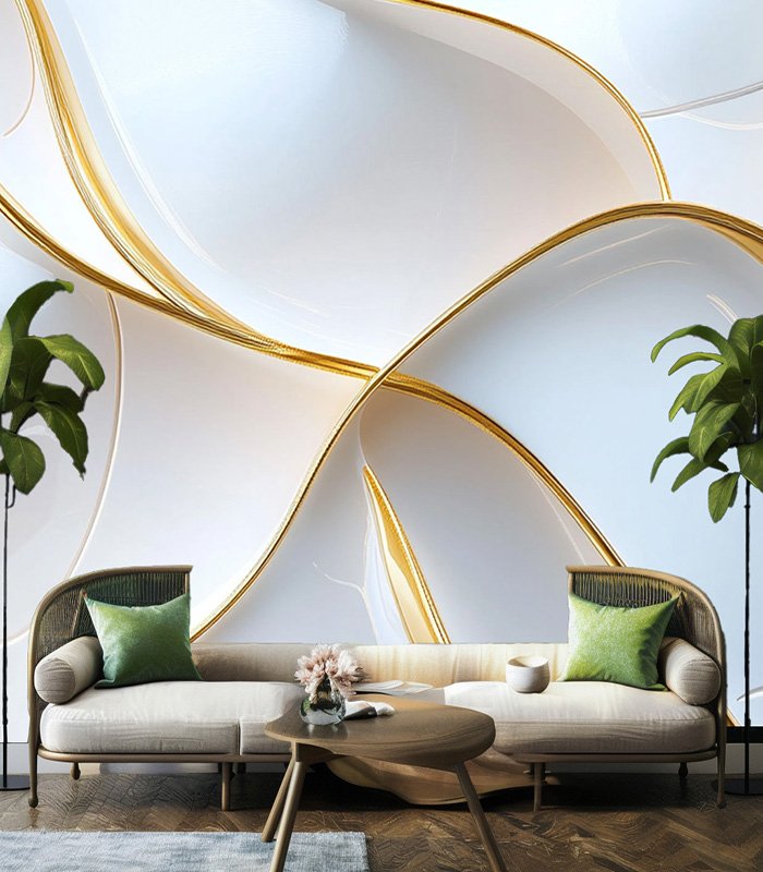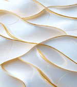Abstract design with flowing white curves and elegant gold accents, creating a sophisticated and dynamic visual texture.