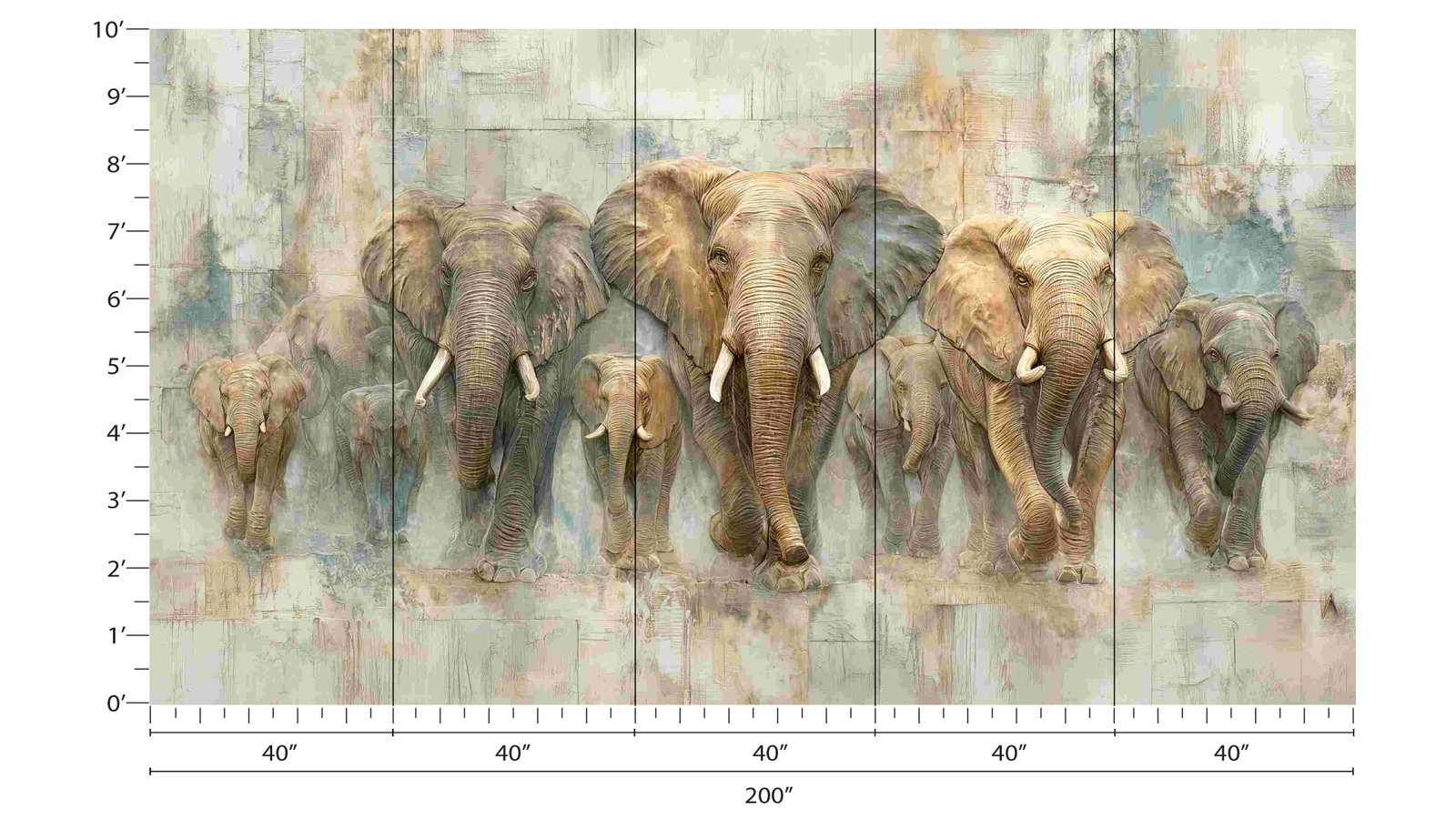 A group of elephants walking together against a textured background.