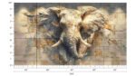 A detailed elephant sculpture mounted on a textured wall, showcasing intricate craftsmanship.