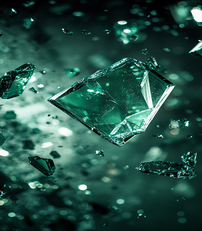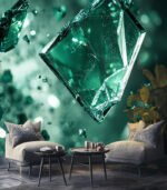 A captivating display of emerald green crystals suspended in a dreamlike, sparkling abyss, evoking a sense of mystical allure and otherworldly beauty.