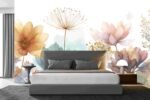 A collection of various pastel-colored flowers and leaves with delicate details and soft watercolor effects.
