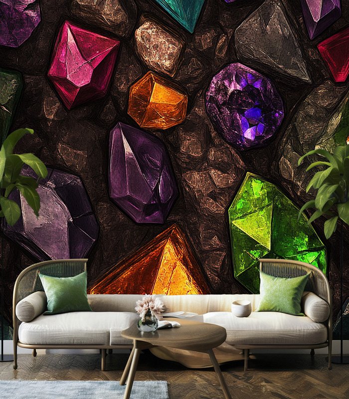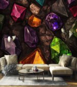 A vibrant collection of various colored gemstones, each uniquely cut and textured, creating a dazzling display of nature’s artistry in mineral form.