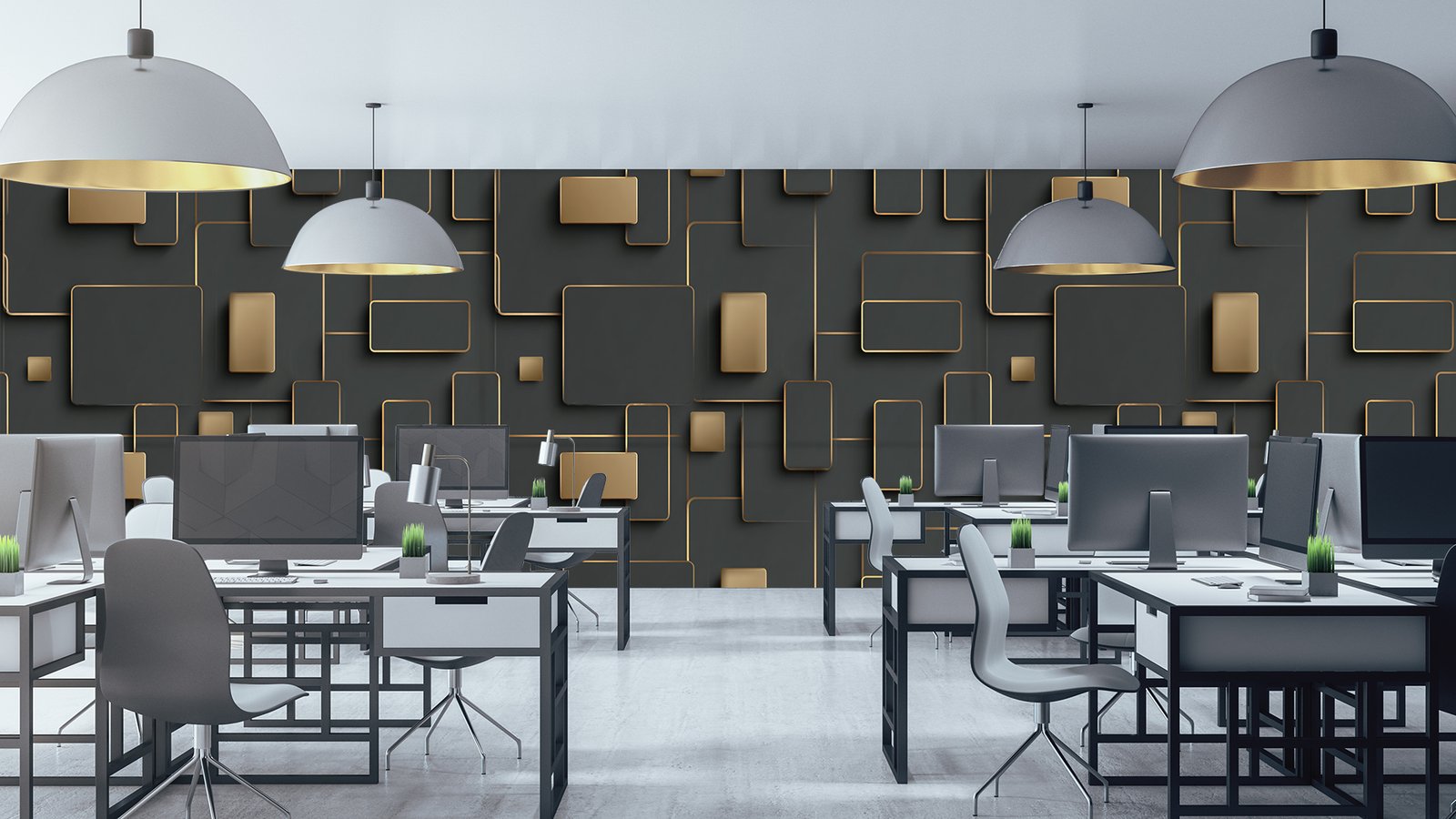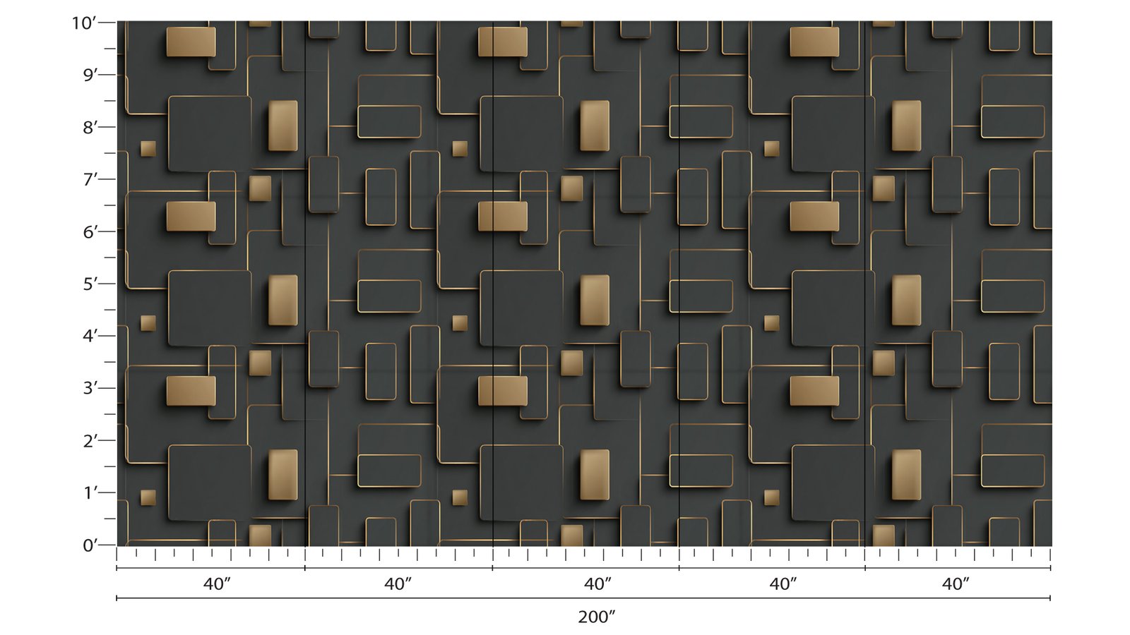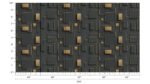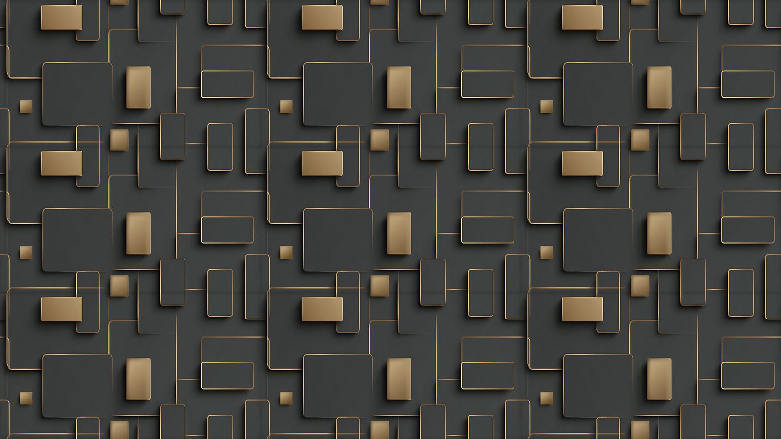 Abstract design featuring various rectangular shapes with gold outlines on a dark background