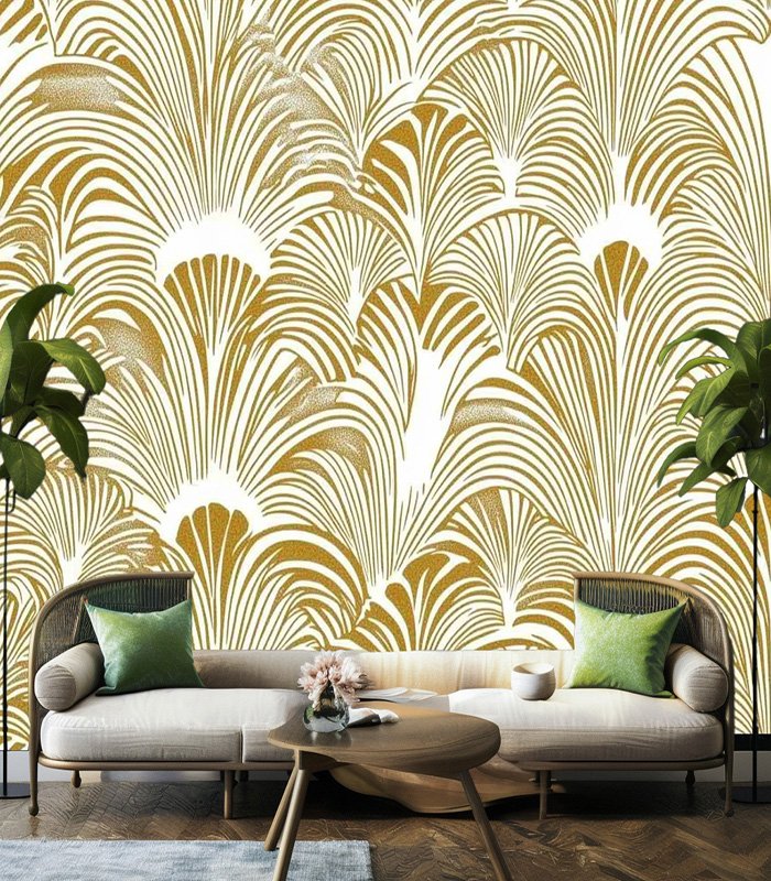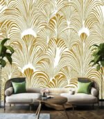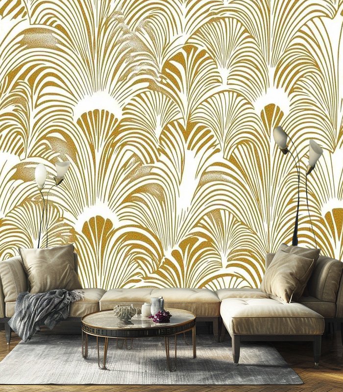 Art Deco-inspired pattern with gold fan-like shapes, creating an elegant and symmetrical design. Perfect for vintage-themed decor or fashion elements.