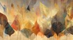 Abstract design featuring golden and colorful leaves with intricate vein patterns.