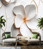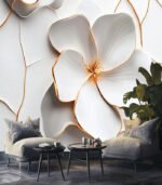 Elegant white flowers with golden edges gracefully adorn a textured background, creating a sophisticated and artistic floral design.