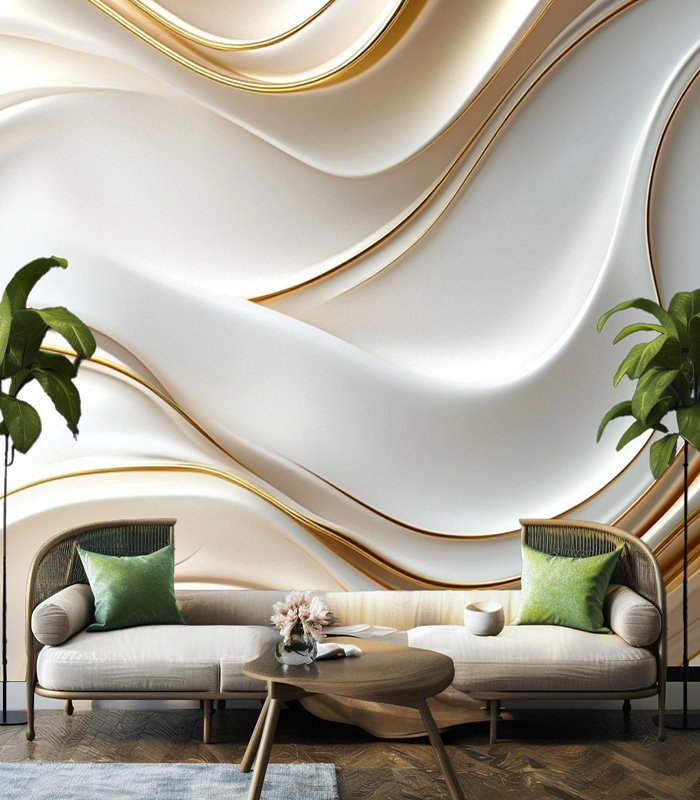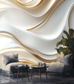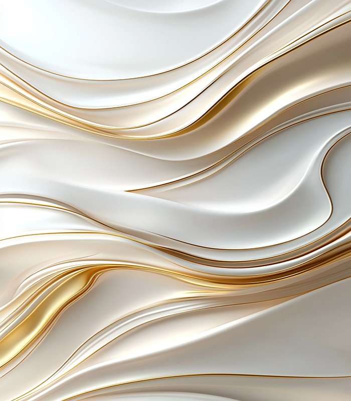 Elegant abstract design with smooth, flowing white and gold waves, creating a luxurious and sophisticated visual texture. Perfect for modern art and decor.
