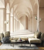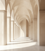Concrete tunnel with repeating square patterns creates an optical illusion of infinite depth, showcasing geometric symmetry and architectural minimalism in monochrome tones.
