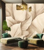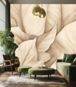 Intricate beige leaf pattern creates a soothing, natural texture. The detailed lines and soft tones evoke a sense of calm and elegance.