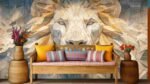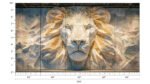 Geometric lion face sculpture with intricate patterns and textures, creating a three-dimensional effect.
