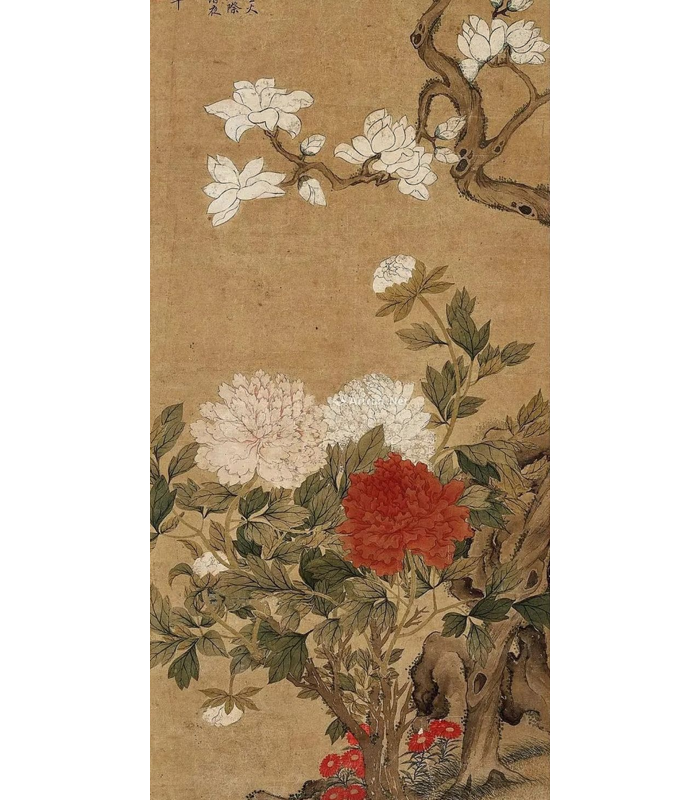A serene forest scene with tall trees and delicate leaves, illuminated by a crescent moon, creating a tranquil and mystical atmosphere.
