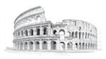 Detailed architectural sketch of the iconic Roman Colosseum showcasing its arches and structure