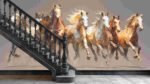 Seven horses galloping together, showcasing various colors and flowing manes against a neutral background.
