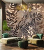 Abstract botanical pattern with earthy tones, featuring layered leaves and textured background, creating a natural and rustic aesthetic. Perfect for home decor or textiles.