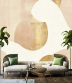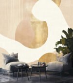 Abstract art with soft beige, white, and gold tones. Organic shapes and subtle textures create a calming, harmonious visual experience. Perfect for modern interiors.