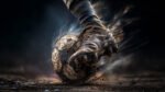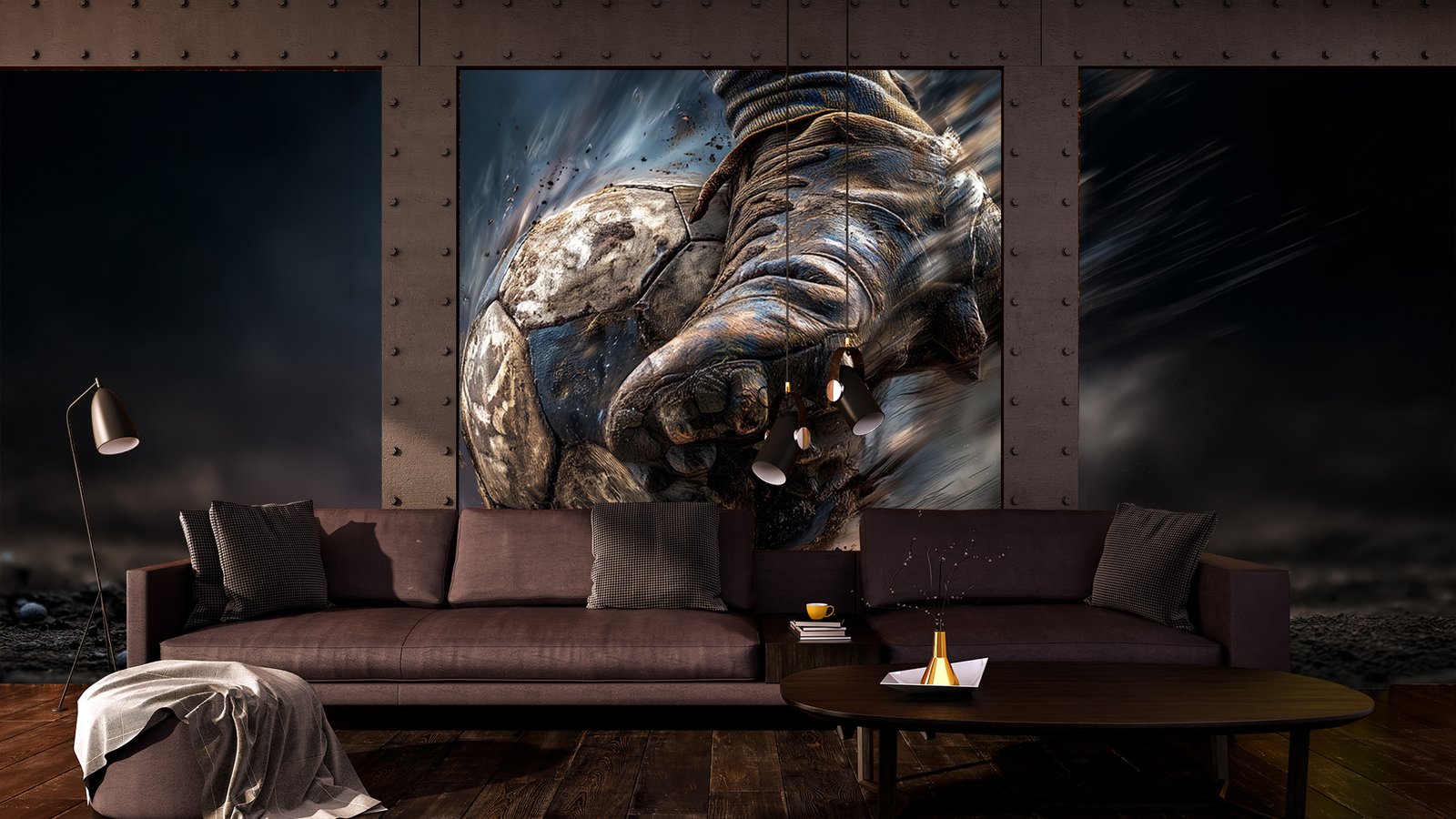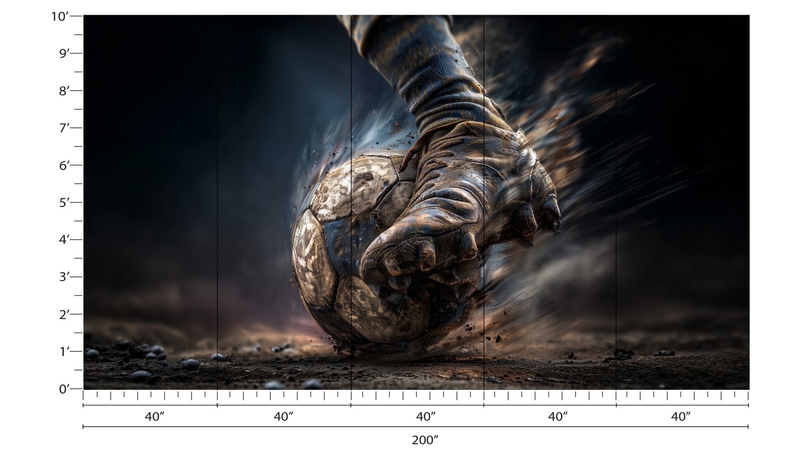 Dynamic action of a foot striking a soccer ball with dust and motion effects