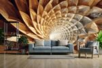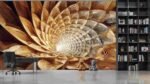 A swirling design resembling wood grain, featuring layered, pointed shapes in shades of brown and cream.
