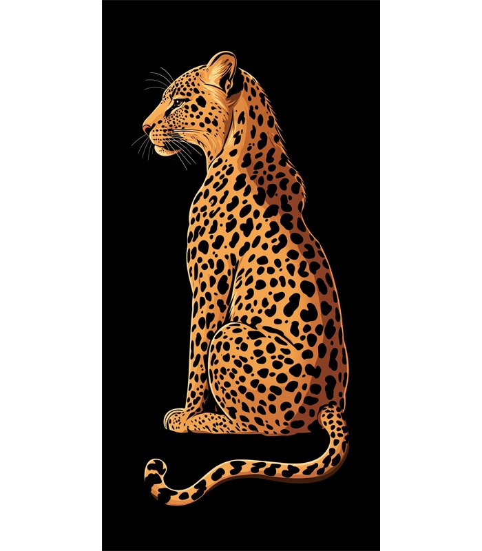 A beautifully detailed illustration of a leopard sitting gracefully against a black background, showcasing its striking spotted coat and elegant posture.