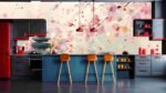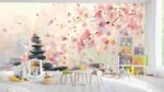 A serene arrangement of stacked stones surrounded by pink cherry blossom petals falling gently.