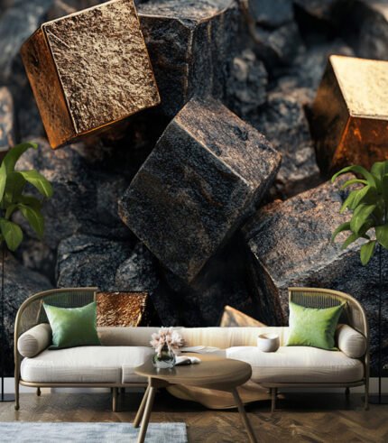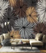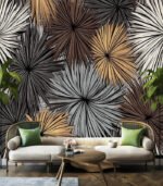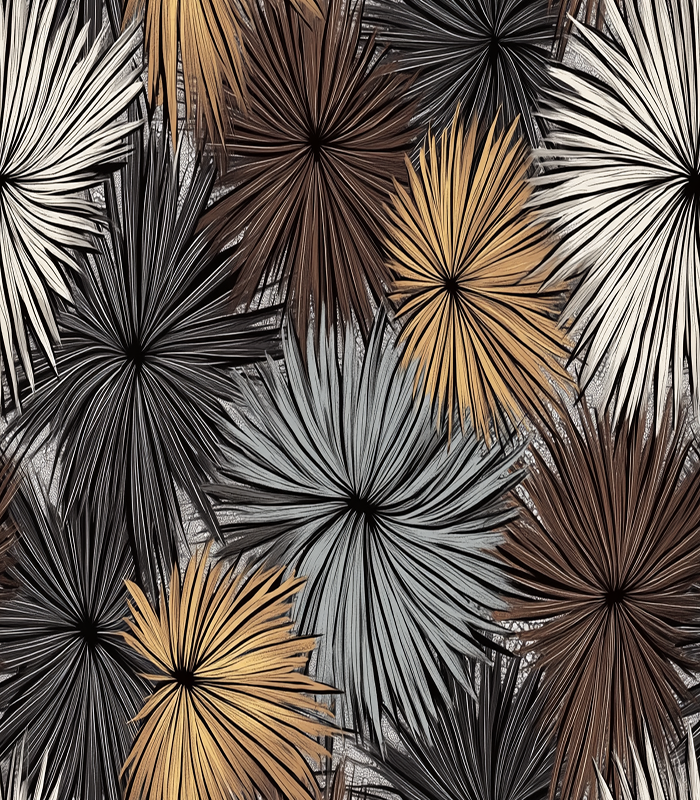Abstract pattern of overlapping, textured starburst shapes in earthy tones, creating a dynamic and intricate visual tapestry with a sense of depth.