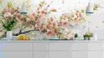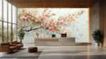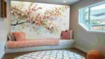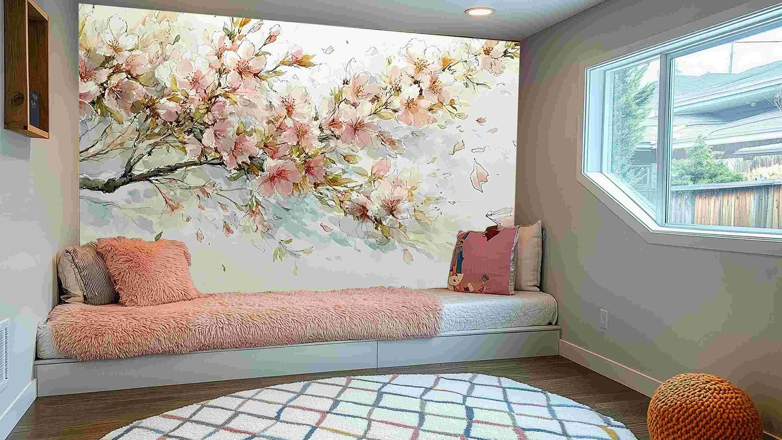 A vibrant vase brimming with colorful flowers perched atop a sturdy tree branch.