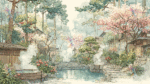 A colorful painting depicting a lush garden filled with various blooming flowers.