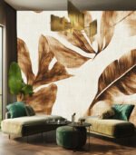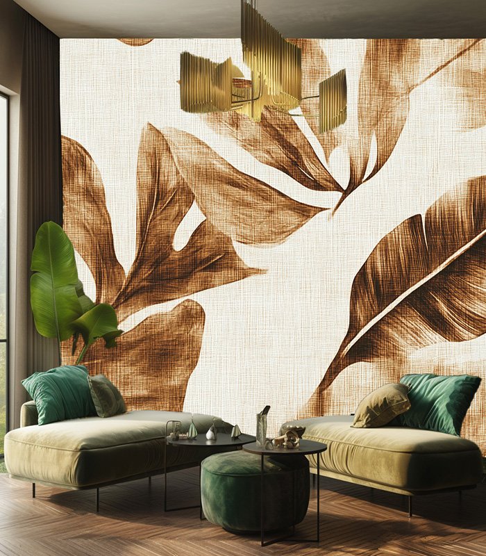 Artistic sepia-toned leaves on textured background, creating a vintage botanical pattern. The design evokes a sense of natural elegance and timeless beauty.