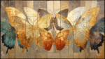 A vibrant painting featuring colorful butterflies perched on a textured wall, showcasing their lively poses and intricate details.