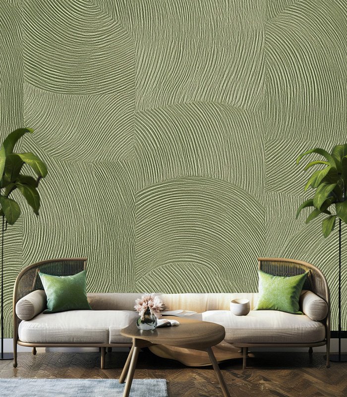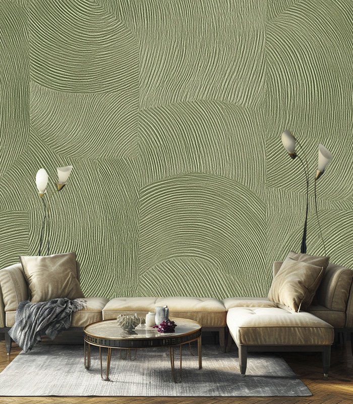 Abstract green pattern with overlapping curved lines, creating a textured, wave-like effect. The design evokes a sense of movement and depth.